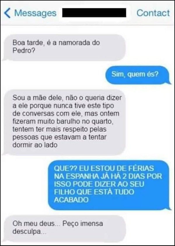 A namorada rapidamente respondeu a mensagem dizendo que estava de férias na Espanha a mais de dois dias. A mãe rapidamente percebeu seu erro e ainda tentou se desculpar, mas, era tarde demais.